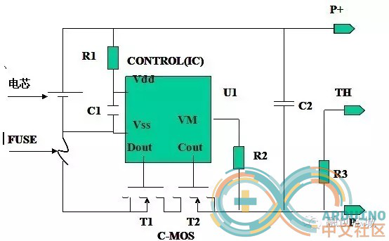 U1:控制IC;保護板所有功能都是IC通過監視連接在VDD-VSS間的電壓差及VM-VSS間的電壓差而控制C-MOS執行開關動作來實現的。